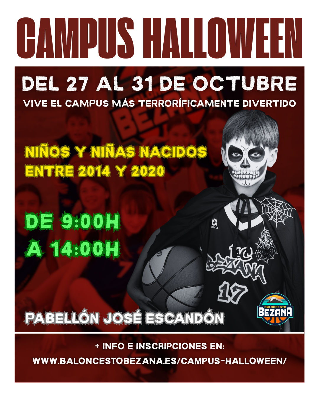 Os presentamos el CAMPUS BEZANA 2O25 EDICIÓN HALLOWEEN, una propuesta de Baloncesto Bezana destinada a dar respuestas a los siguientes objetivos: